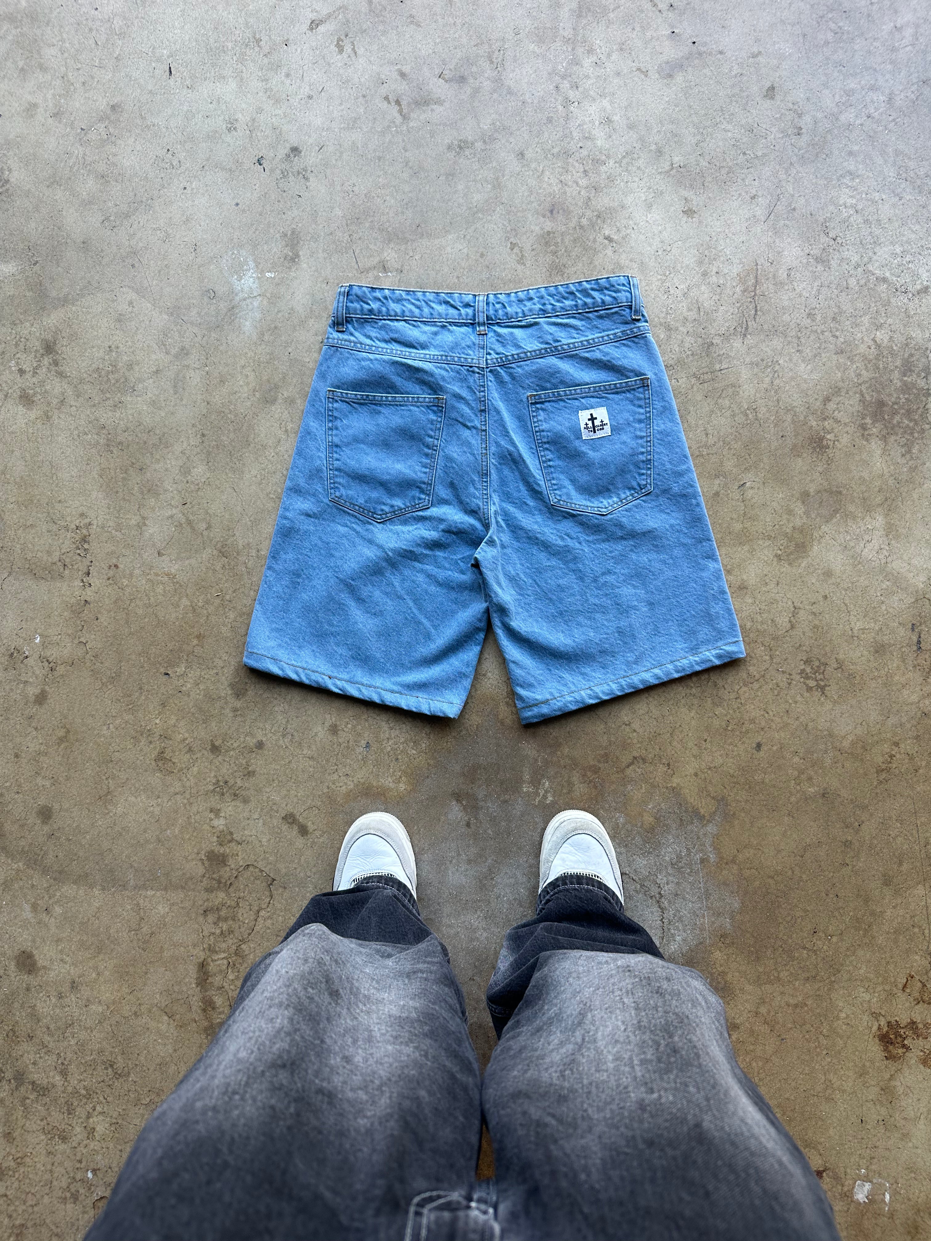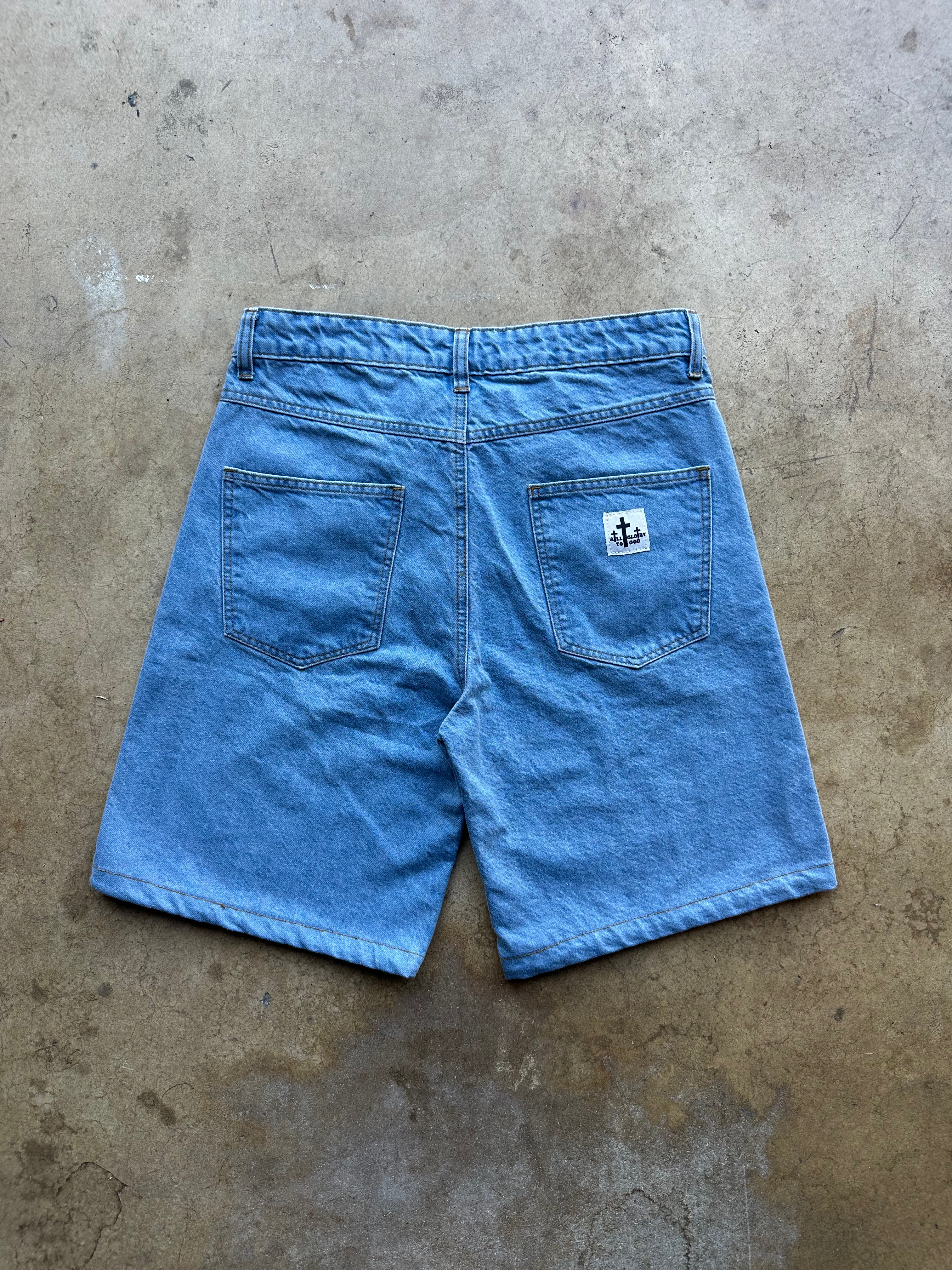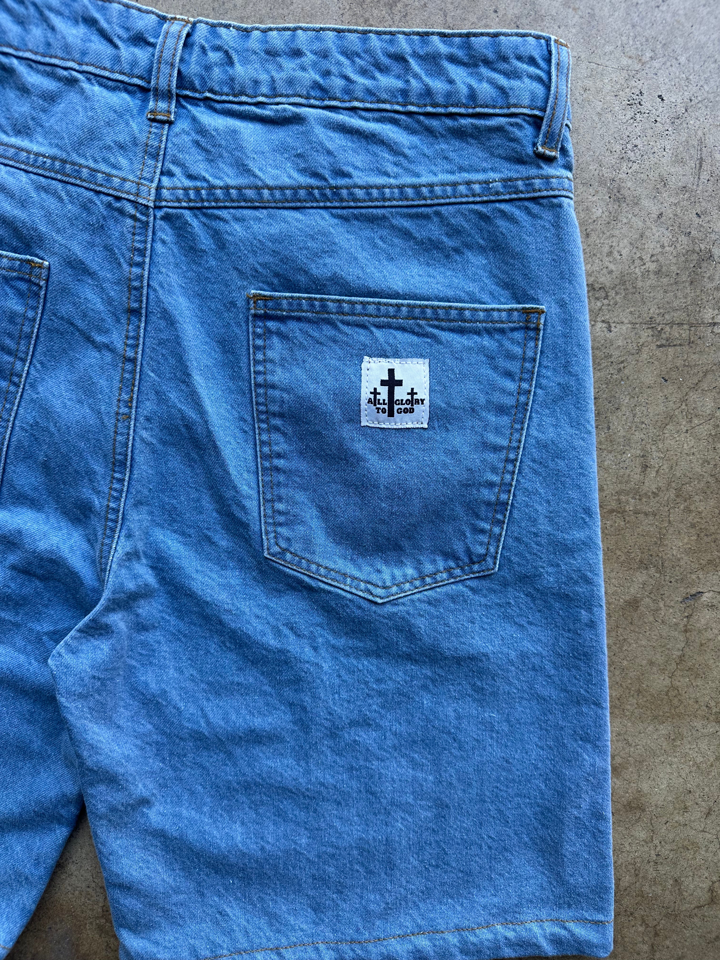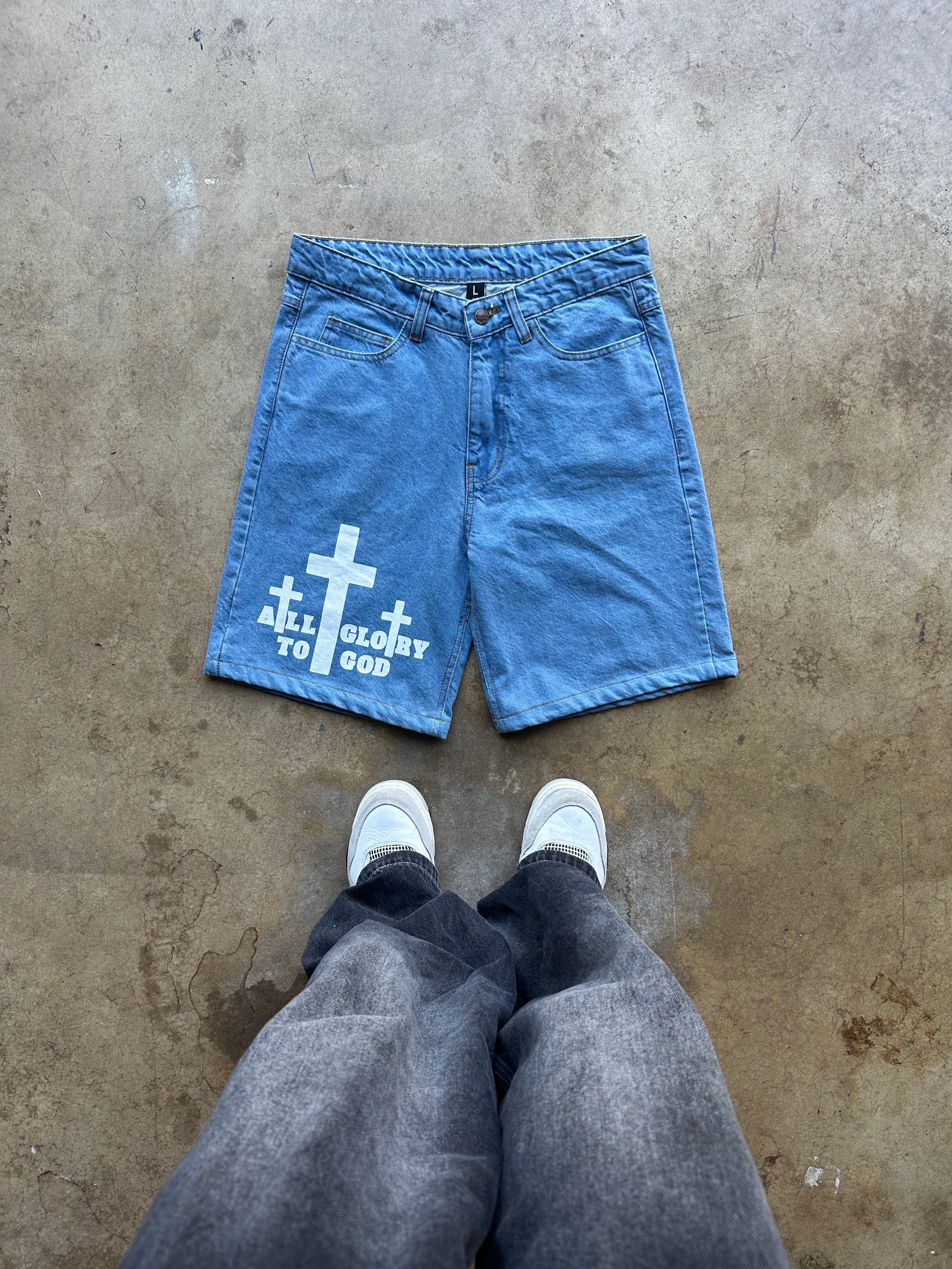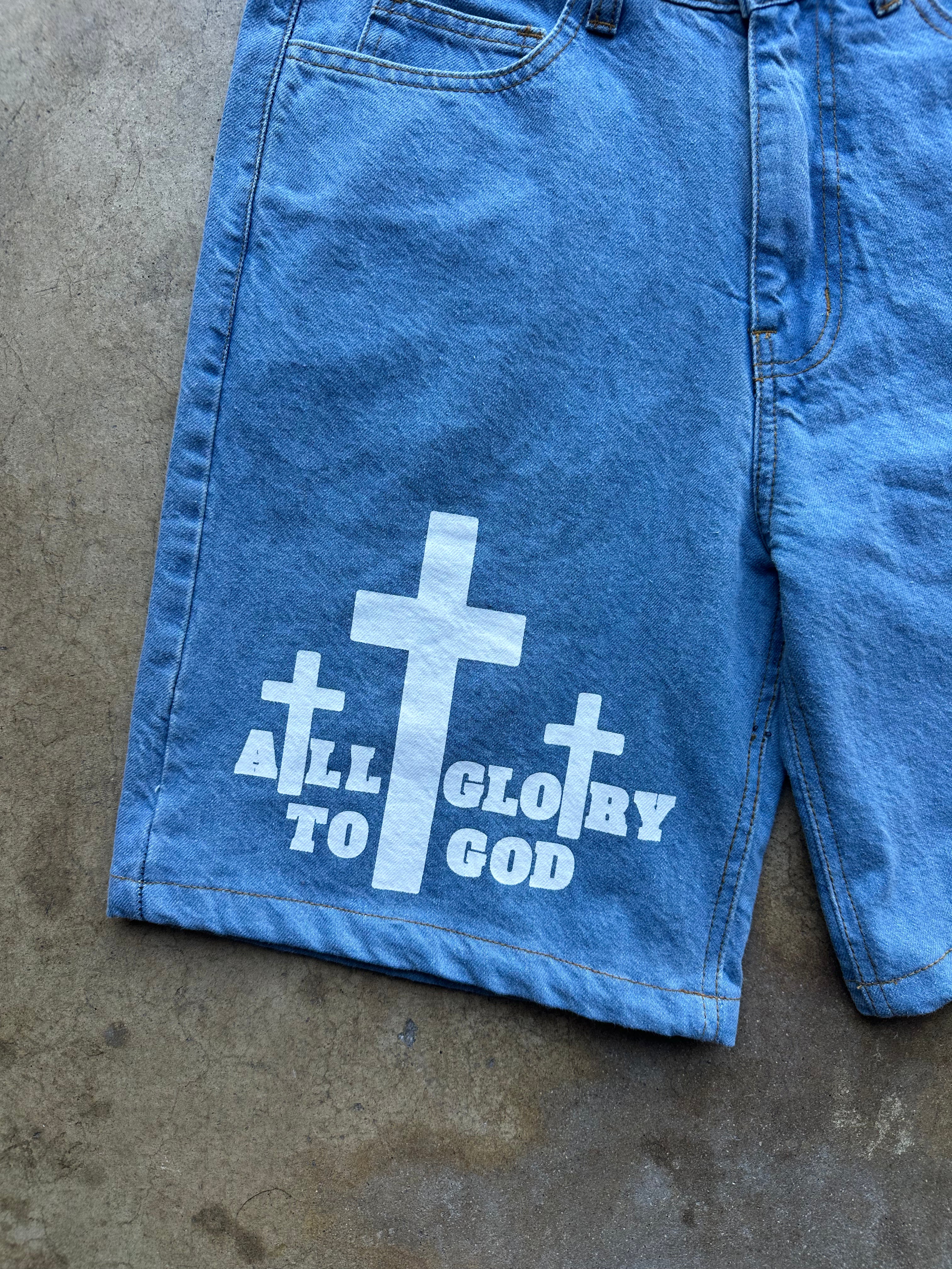 ALL GLORY TO GOD JORTS BLUE
